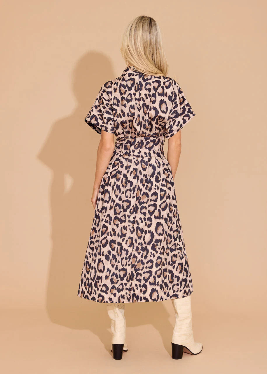 The Becca Dress brings effortless cool with its leopard print and flattering silhouette. Featuring a button-up front, short sleeves, and a cinched waist, it’s a bold go-to for day or night.