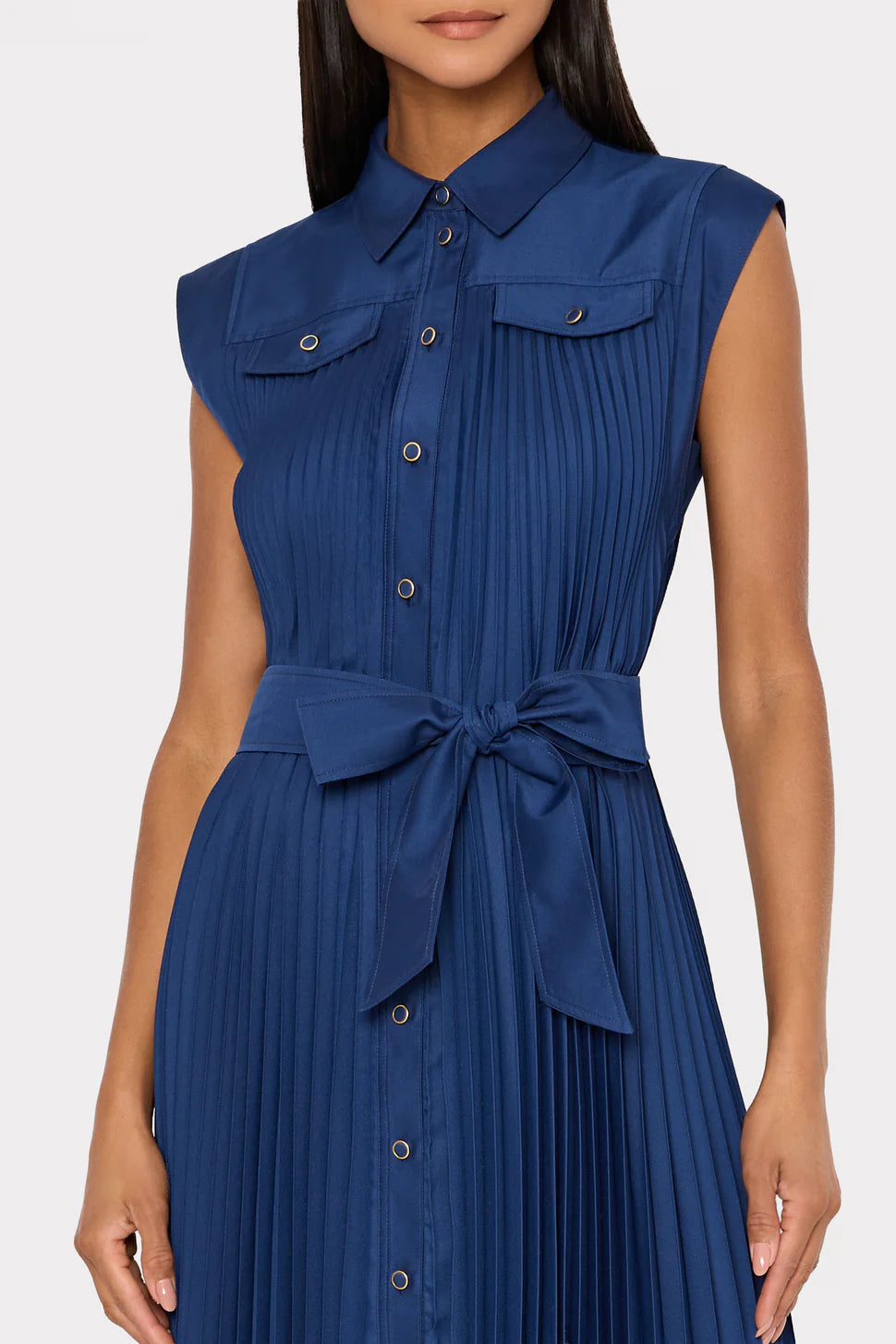Cut from a twill fabric with the signature pleating throughout, the Johanna dress is a button front style that hits at midi length. Perfect workday dressing, it’s accented with a collar and finished with a flattering, waist-cinching tie.