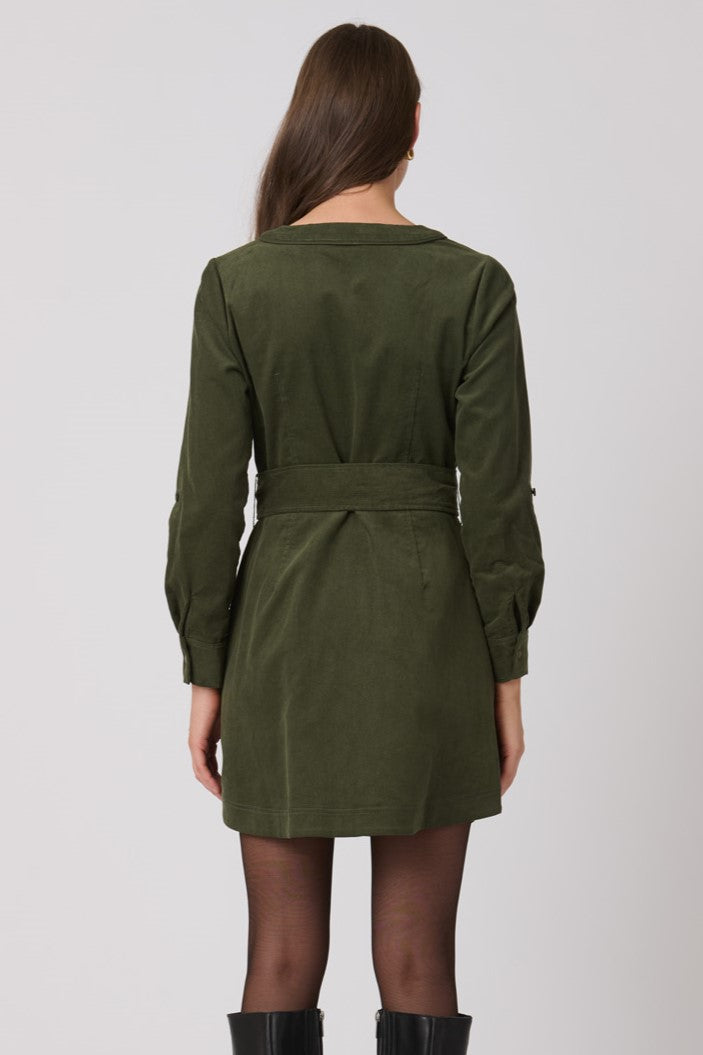Crafted from soft corduroy, this button-front dress features a belted waist, flattering silhouette, and versatile style that can be dressed up with boots or worn casually.