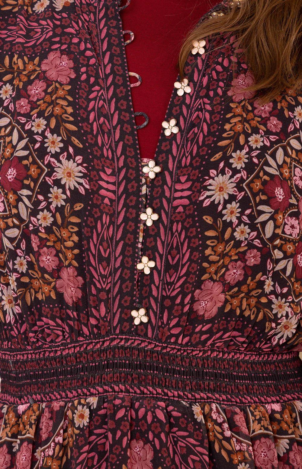 This chiffon maxi dress has smocking details, a tiered voluminous skirt, and a nice maxi length. This fabulous fall print will make you stand out!