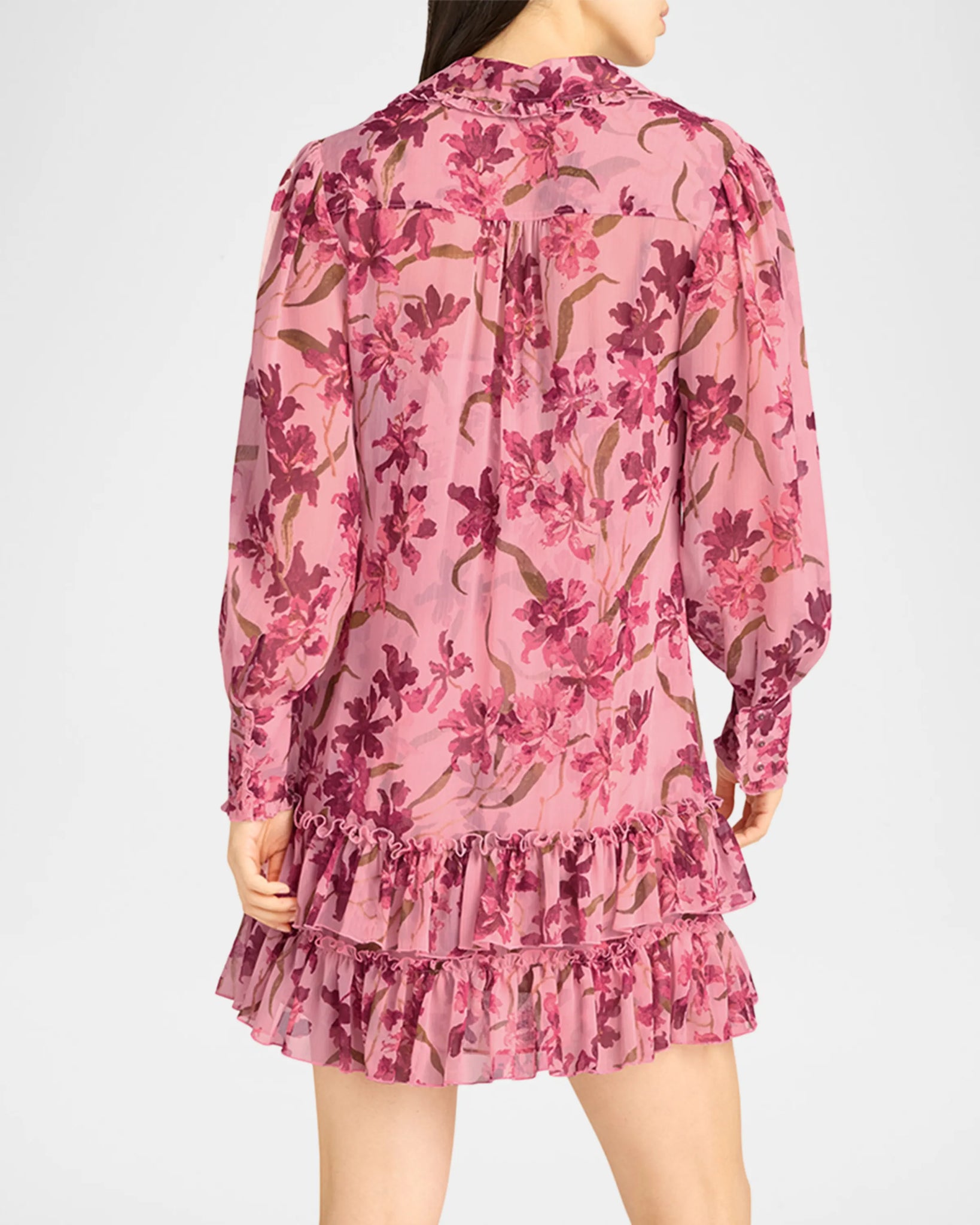 The Trailing Hibiscus Lupetto Dress is a long-sleeved mini with a delicately ruffled collar and hem, showcasing our signature hibiscus print. Lightweight and breathable, it offers effortless movement and comfort, making it an elegant choice for casual occasions.