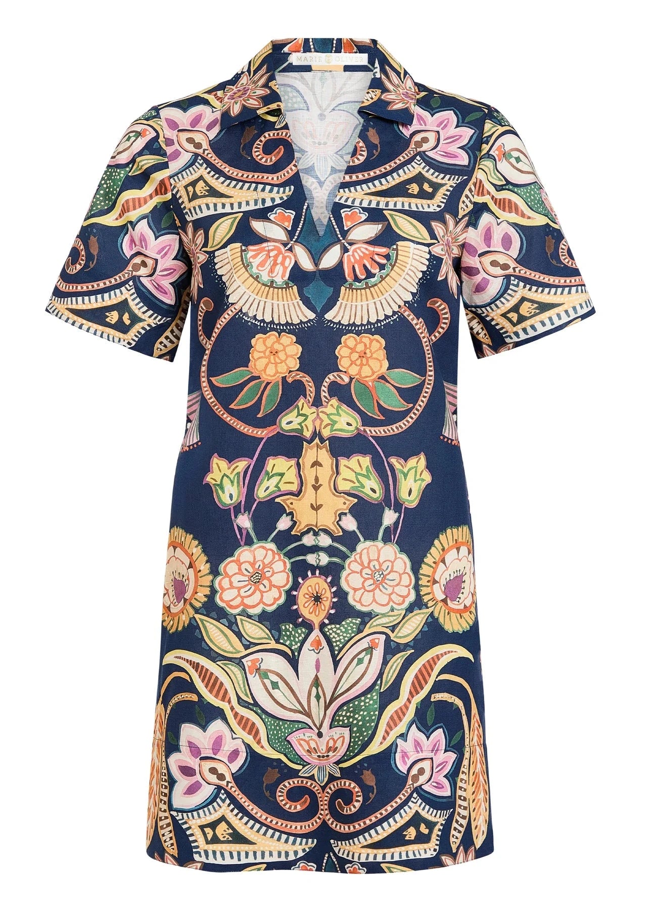 At the intersection of comfort and style, our Dede mini dress is the epitome of elevated everyday dressing. The slip-on silhouette hangs straight and features a polo-style collar and a floral placement print that will have you cashing in your frequent flyer miles and heading for the tropics.