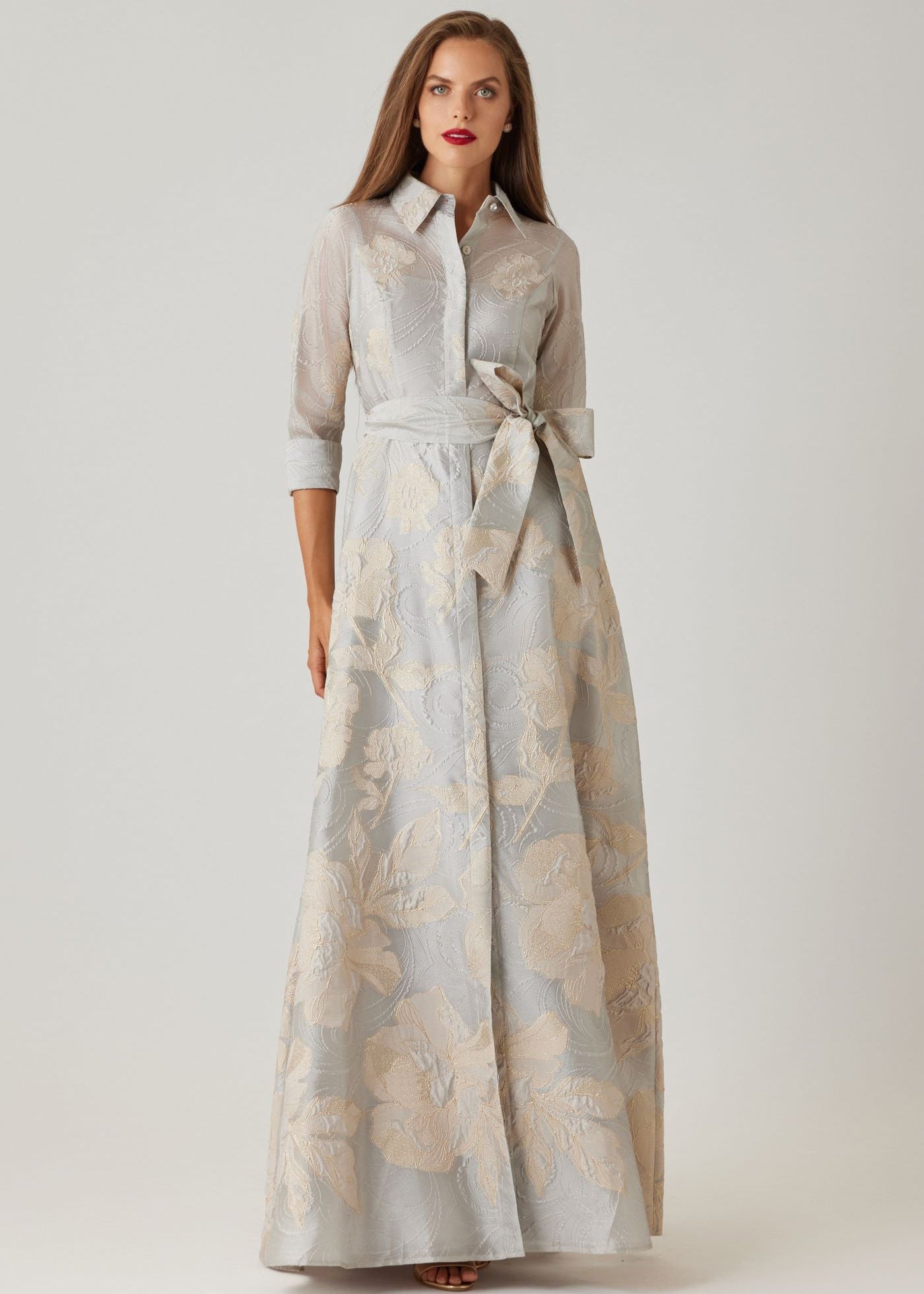 Metallic Floral Jacquard Shirt Waist Gown