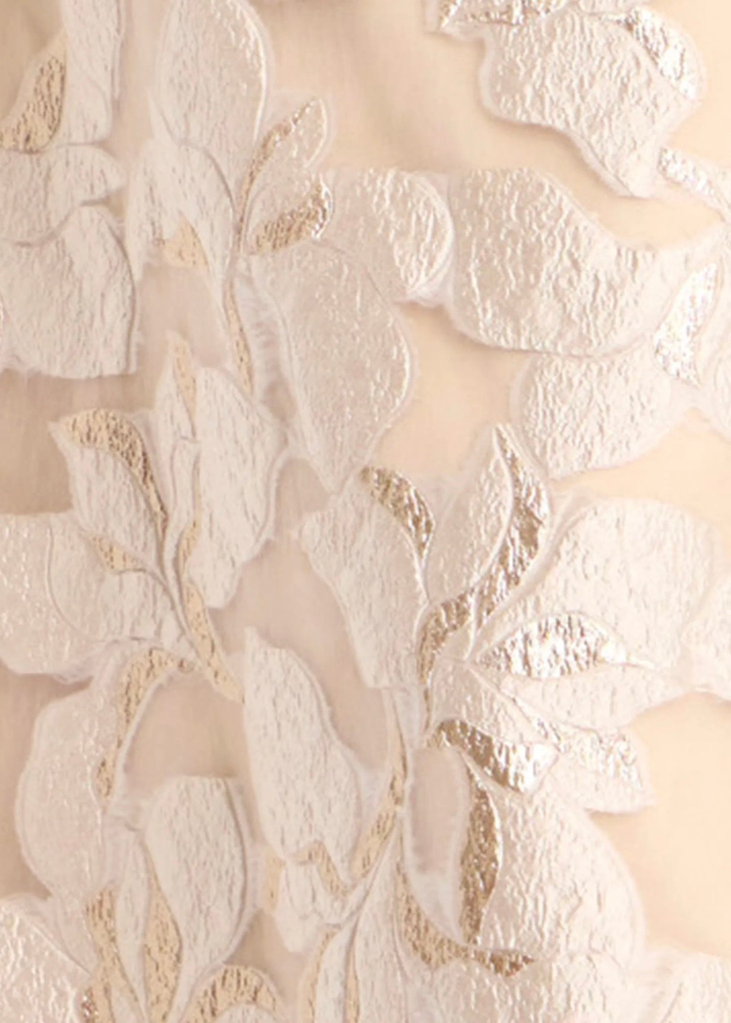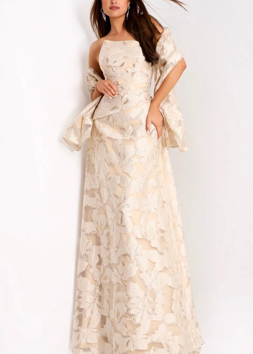 Jovani Metallic Jacquard Floral Embroidery A-Line Gown in Nude