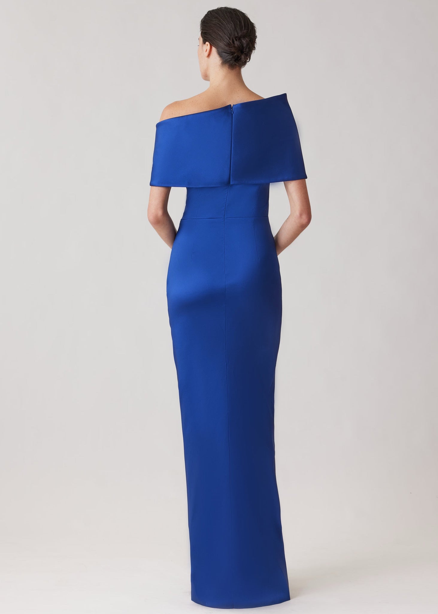 Stretch Mikado Asymmetrical Off Shoulder Cuff Gown