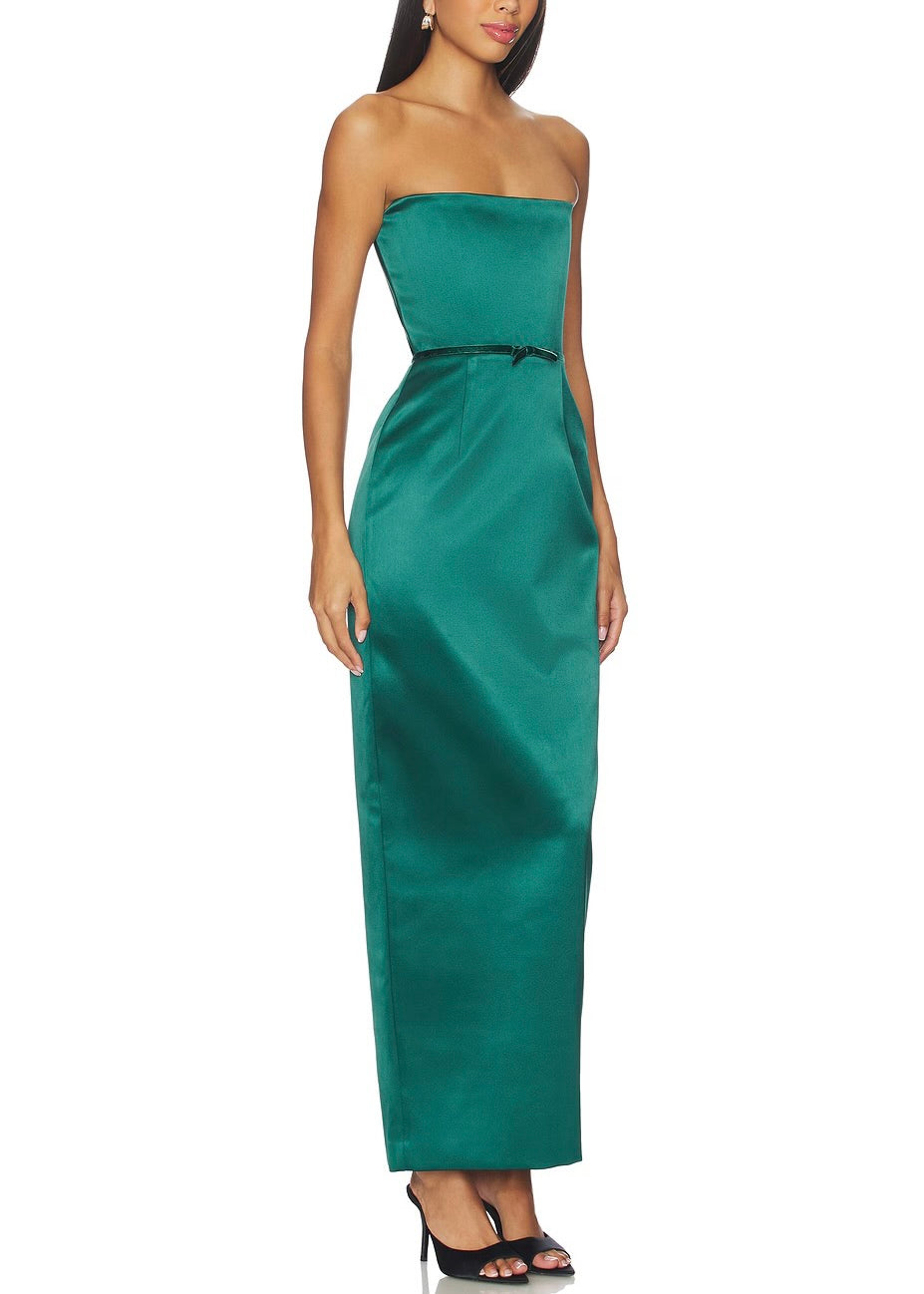 - Cinched design at waist with bow accent