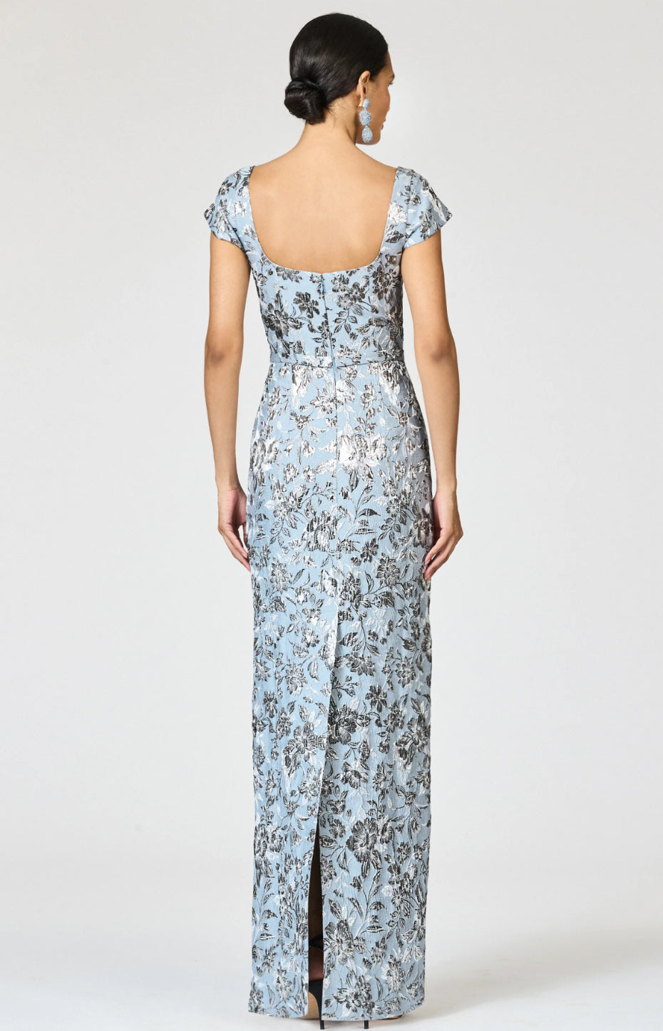 Introducing Grace, an exclusive, limited edition gown for the discerning customer. Featured in a metallic cloque fabric exudes sophistication. The cap sleeve, fitted bodice, and slim a-line skirt flatter any figure. Only a few were made, making it truly special.