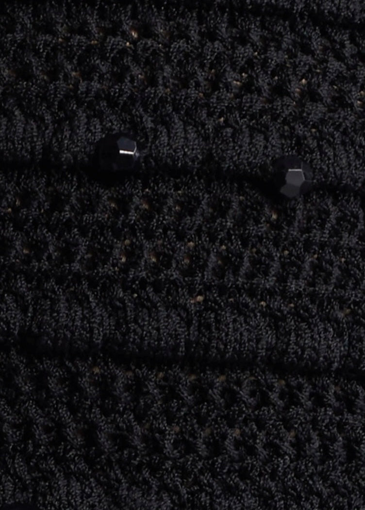 Glitzy tonal beading and goldtone shield buttons add some shimmer and shine to this textured cardigan that's a major glam addition to any look you pair it with.