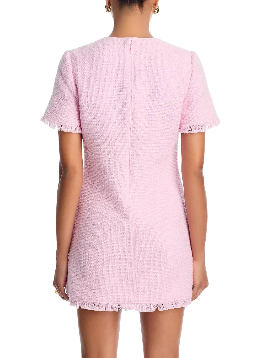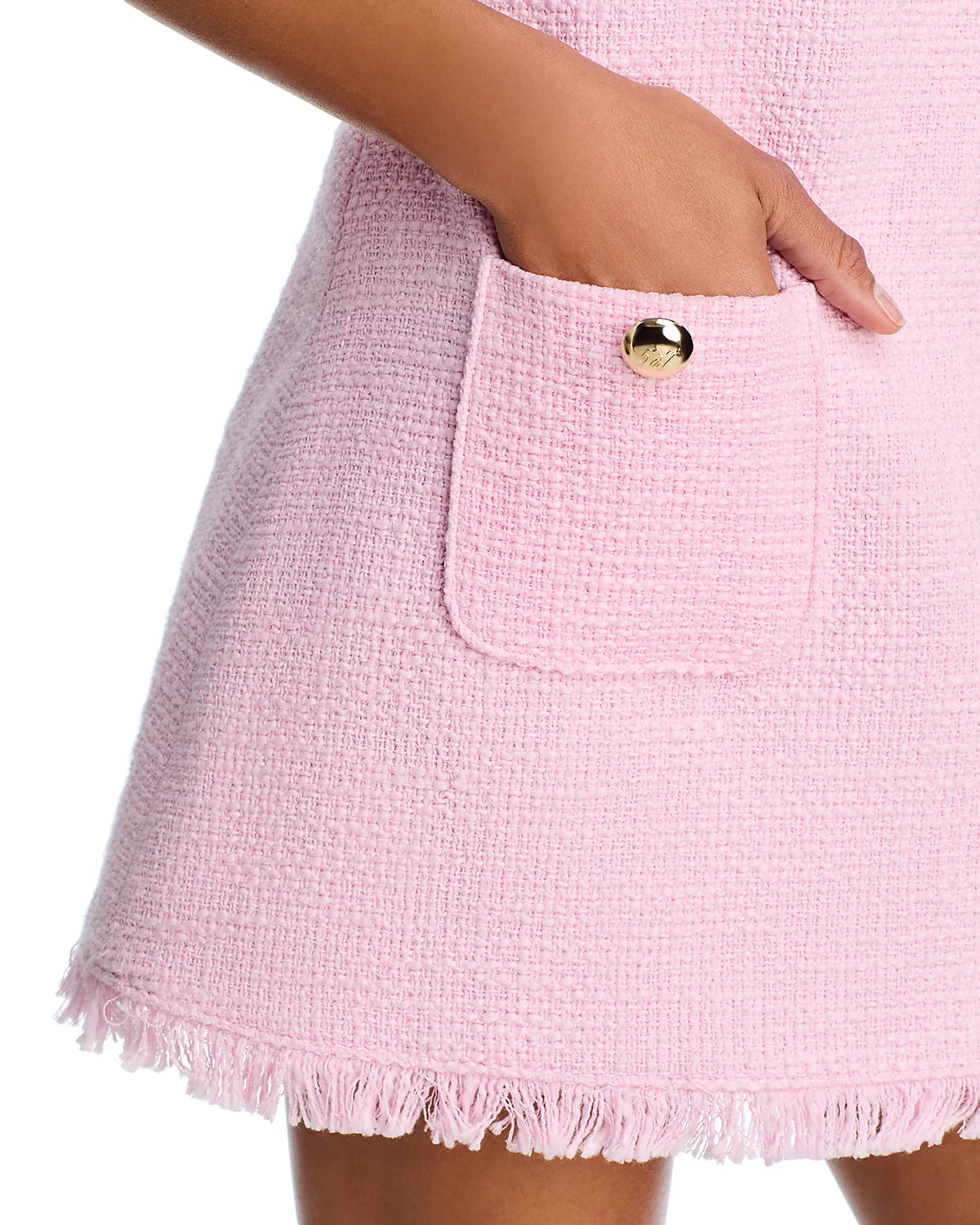 This blush pink tweed mini dress brings timeless elegance with a modern twist. Featuring a tailored silhouette, short sleeves, fringe-trim edges, and two front patch pockets with gold button details, it’s the perfect blend of polished and playful. Ideal for brunch, events, or any occasion that calls for effortless sophistication!