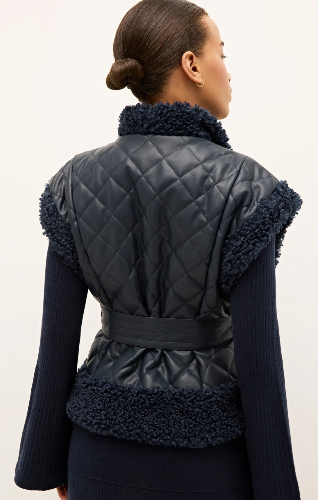 Layered over any of our printed blouses and seasonal dresses, Marie Oliver’s newest vest adds interest and style to any look, extending the wearability of lightweight styles through fall into winter. Made of quilted vegan leather with curly Sherpa trim, the Beatrice is a design team favorite for its balance of Bond-girl sophistication and cozy Alpine aesthetic.
