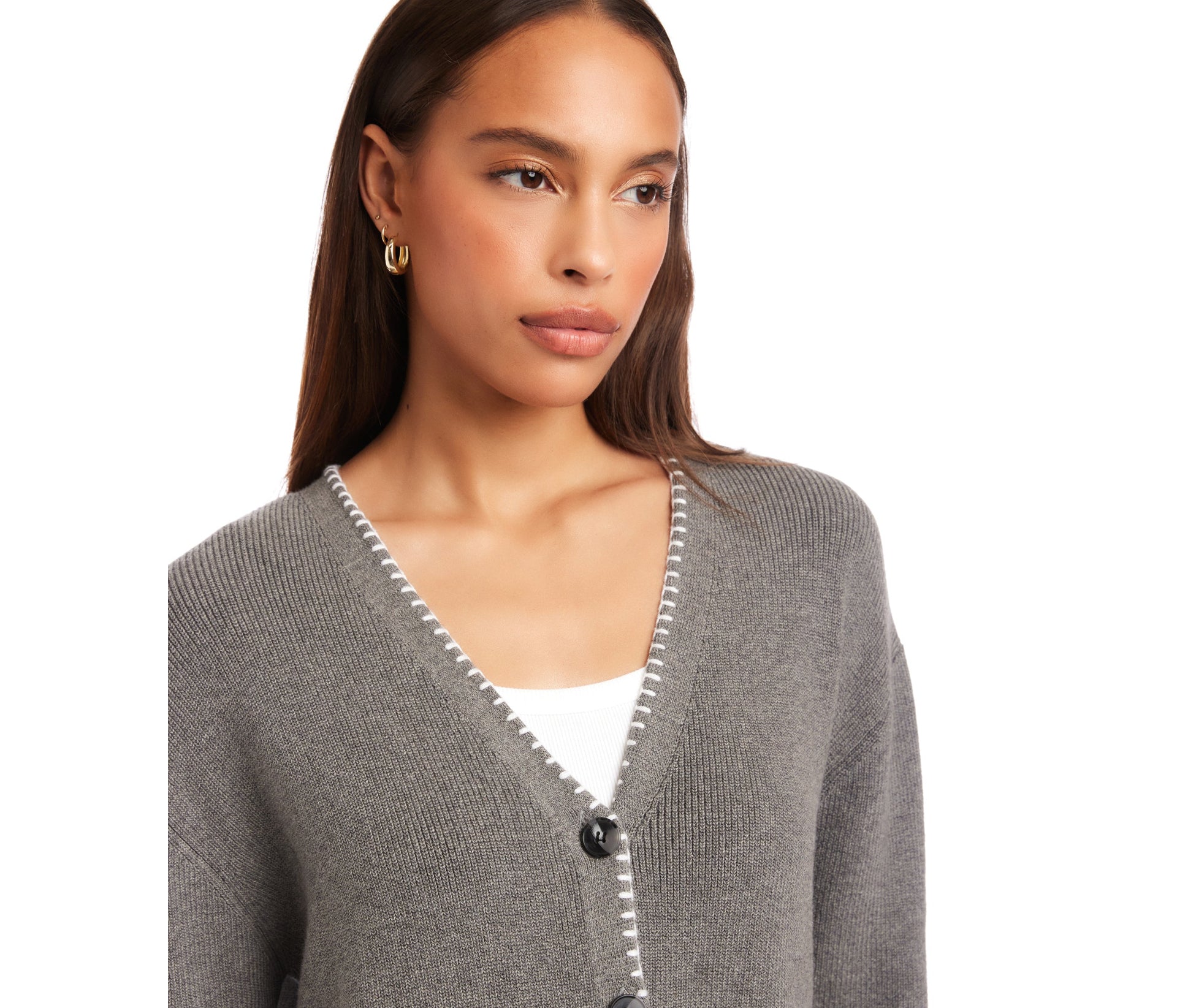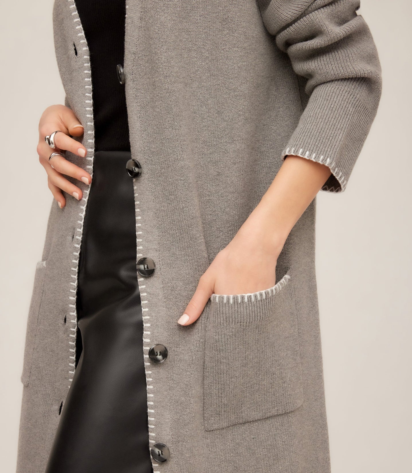 Crafted with a touch of cashmere for an ultra-soft feel, it features long sleeves, drop shoulders, and a relaxed silhouette for effortless layering. Contrast edge stitching adds a subtle statement detail, while front patch pockets and a button-down closure offer practical polish.