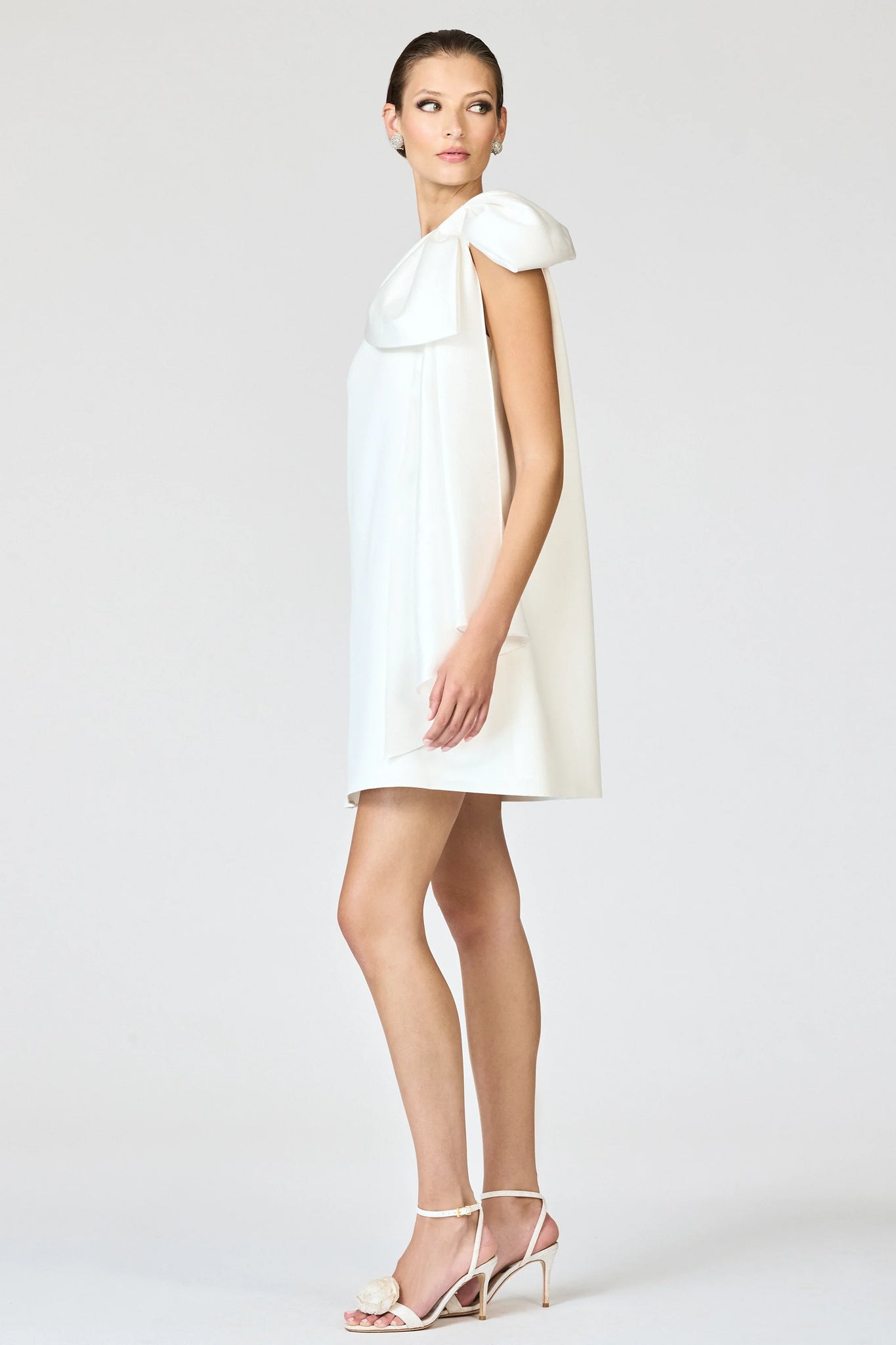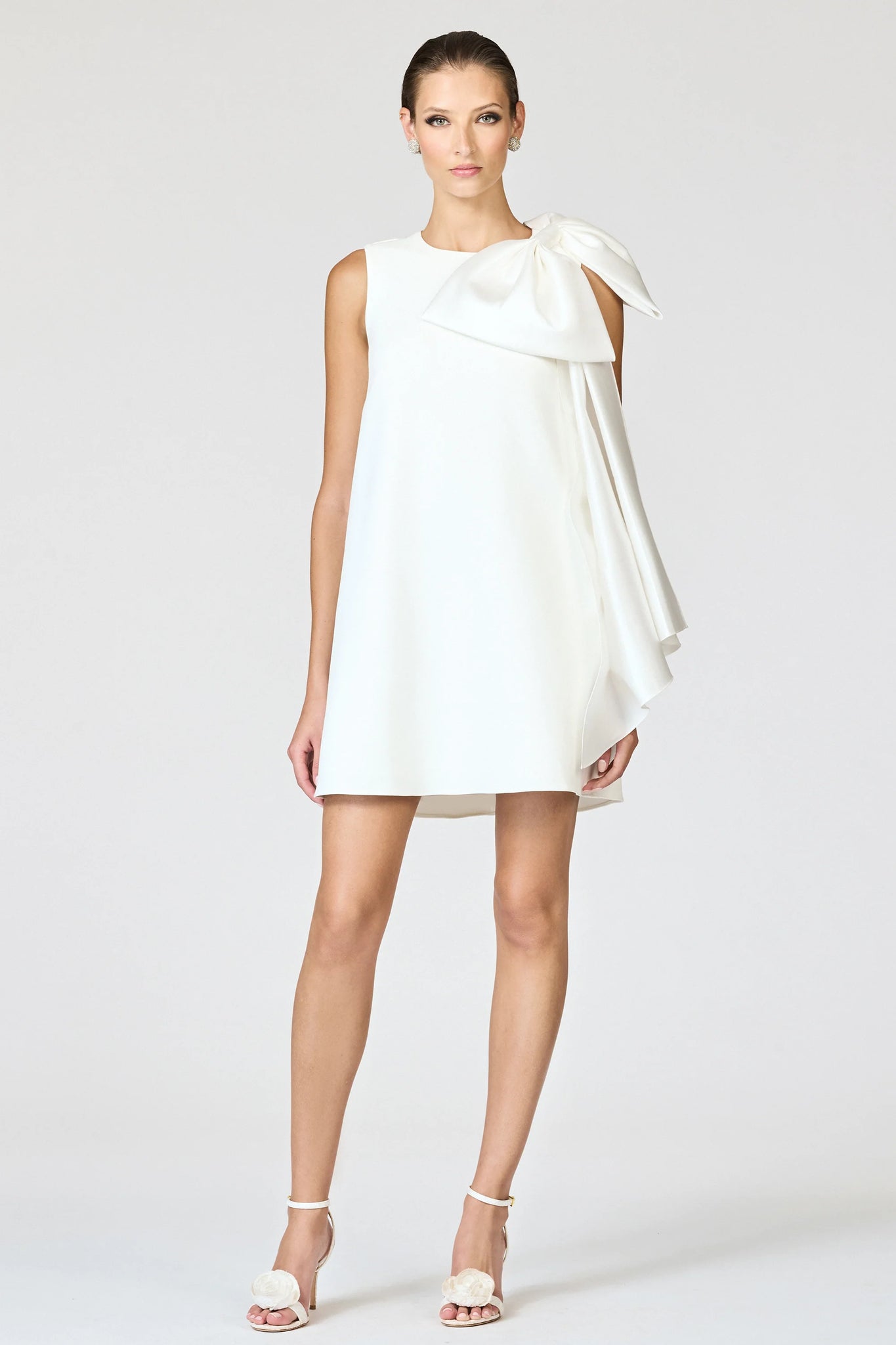 The Harmony Dress in Ivory is the definition of modern romance with a sculptural twist. Crafted in fluid ivory gazar, this sleeveless mini silhouette drapes with effortless elegance, gently skimming the body for a graceful shift silhouette. The statement detail is a dramatic oversized bow at one shoulder, paired with a cascading side overlay that creates beautiful movement and quiet drama with every step. Sophisticated, striking, and undeniably feminine, Harmony is designed to make unforgettable moments even more special.