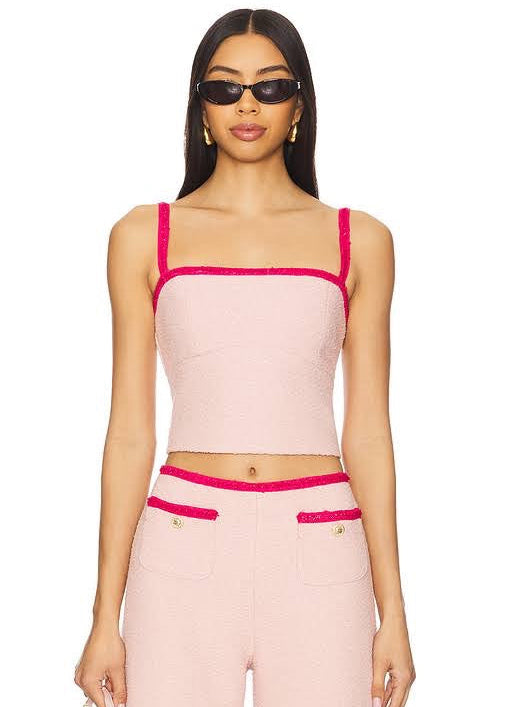 - Tweed fabric with contrast sequined trim